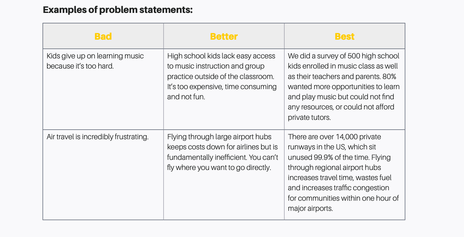 Now that we know who has the problem, we can move on to describing the problem itself. Do not, I am begging you, define your problem statement as a lack of your product: