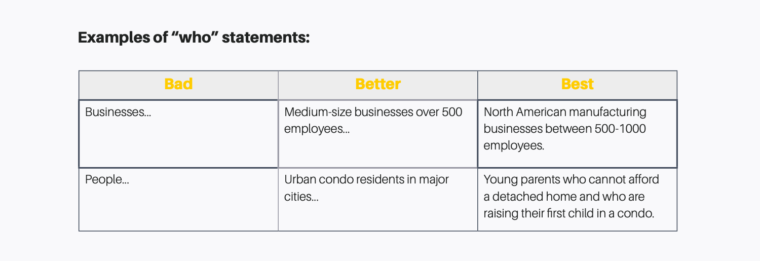 You can’t have a problem statement without mentioning who has the problem.